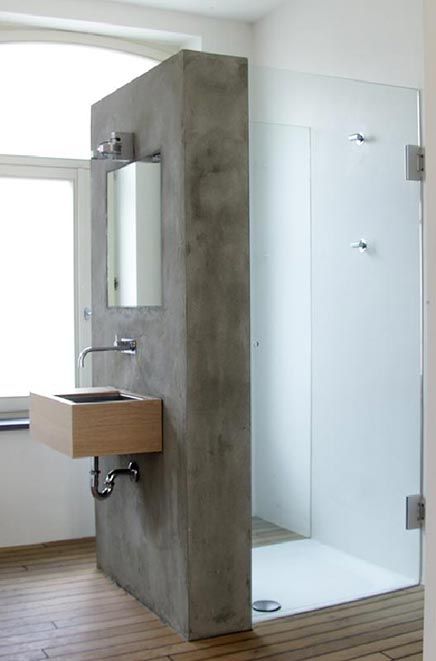 Perete beton spatiu dus baie