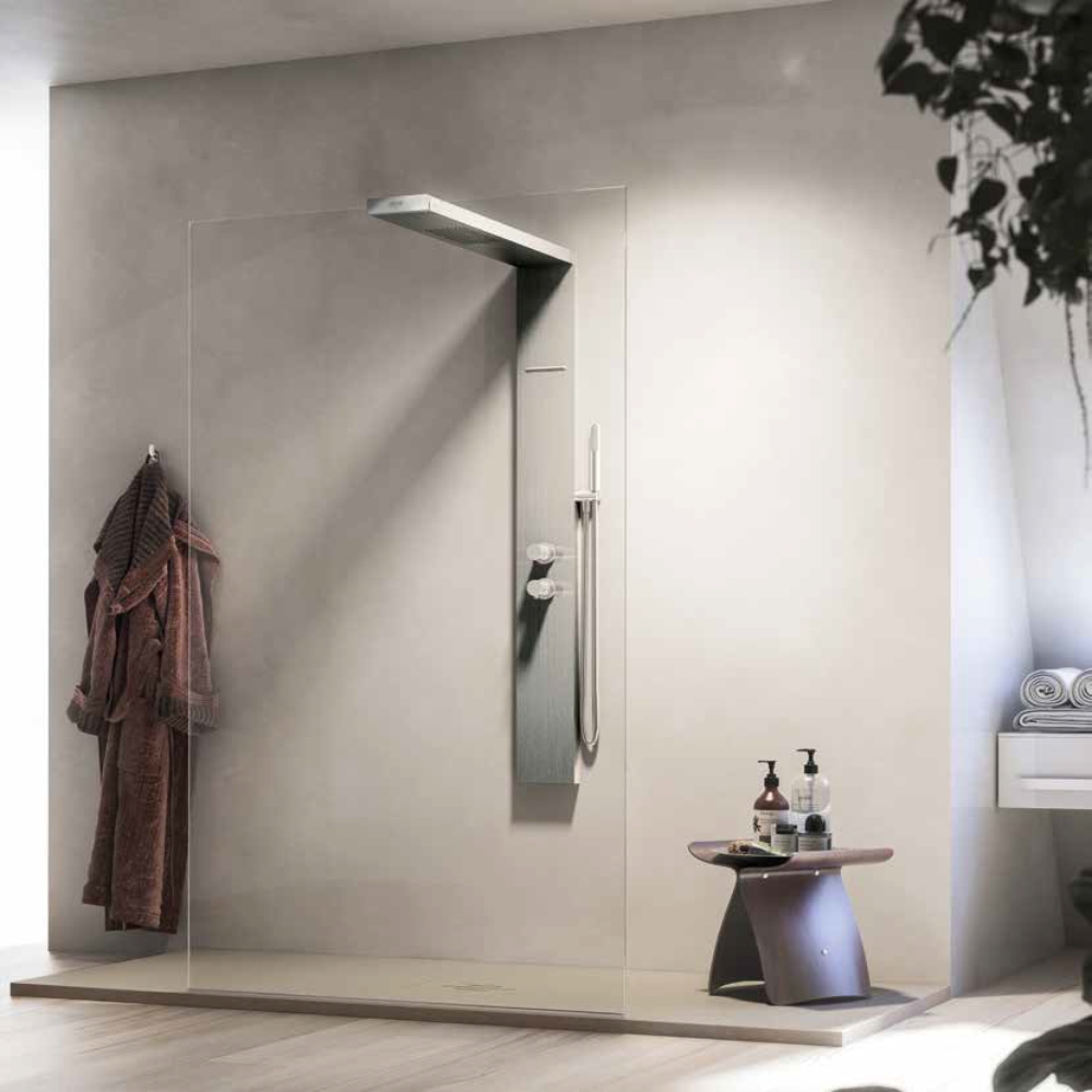 Cabina de dus walk-in echipata cu panel de dus din inox